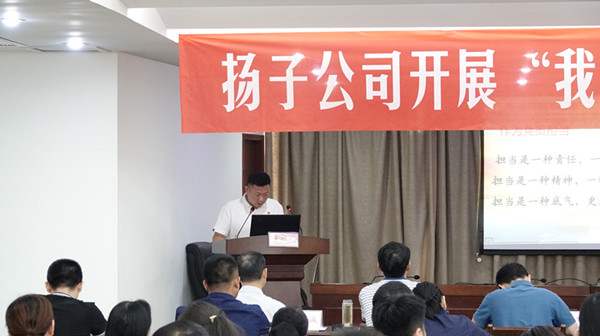 8月21日下午,扬子公司举办了2020年“我是党课主讲人”竞赛活动。扬子公司党委书记、董事长、总经理王武山,党委委员、副总经理刘福军,党委委员、纪委书记、监察专员田乐,以及市委有关部门特约嘉宾出席活动,并担任评委。扬子全体党员和入党积极分子100余人观摩了整场比赛。
