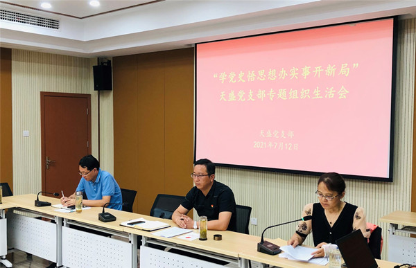 7月12日,天盛党支部在集团五楼会议室召开“学党史、悟思想、办实事、开新局”专题组织生活会。会上集中学习了习近平总书记在党史学习教育动员大会上的讲话、“七一”重要讲话、《毛泽东邓小平江泽民胡锦涛关于中国共产党历史论述摘编》摘选及习近平总书记在青海视察时的讲话等内容。支部书记葛正云主持会议。