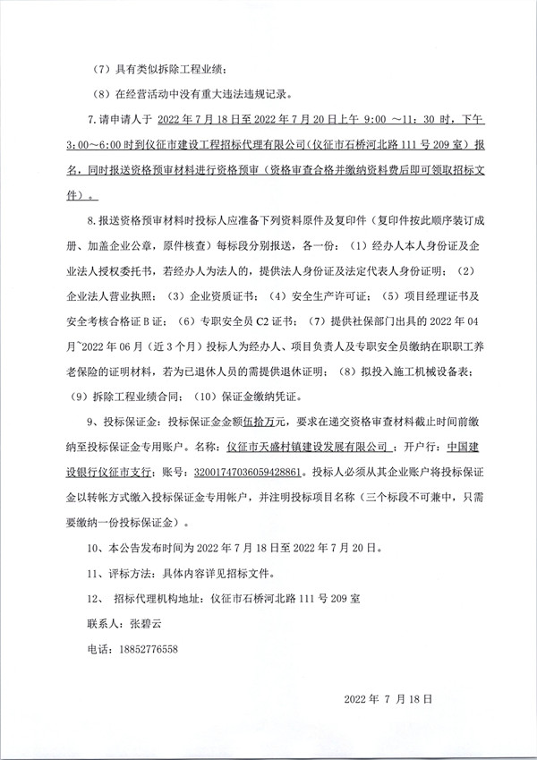 仪征市三河片区城市更新项目拆除工程招标公告
