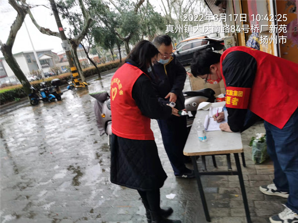3月15日,134名志愿者们投身大市社区、勤丰社区一线,协助社区开展防疫排查工作,经过简短培训,按照社区任务分工,志愿者们主动包干了两个社区13个网格区域内的“敲门行动”和1个菜场、4个商超的疫情防控值守工作,按照“入户敲门、敲门见人、见人问事”的要求,志愿者们穿梭在房前屋后,进小区爬楼栋,逐户逐人排查是否有扬州以外等风险地区返回人员信息,并认真登记居民基本信息、活动范围、疫苗接种等,对前期摸排记录情况进行动态更新,进行“地毯式”排查,不漏一户、不少一人。