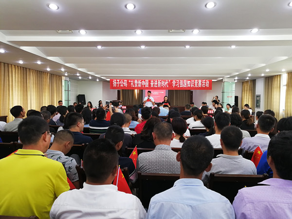 2019年是新中国成立70周年,为了隆重纪念祖国的生日,讴歌伟大祖国所取得的辉煌成就,深入学习贯彻习近平新时代中国特色社会主义思想和党的十九大精神,引导党员干部职工增强“不忘初心、牢记使命”的坚定信念。进一步推动“学习强国”学习平台使用、巩固学习效果,加强党组织和党员的凝聚力和战斗力,推动公司企业文化建设和党建工作的开展,9月29日下午扬子公司组织全体党员干部、职工开展“礼赞新中国奋进新时代”学习强国知识竞赛活动。